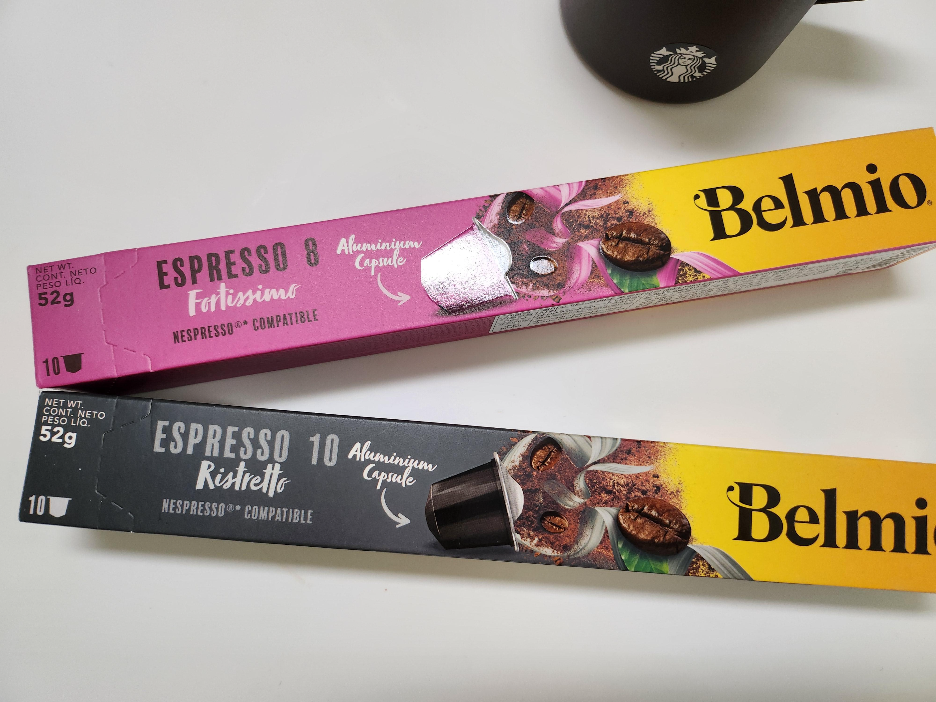 오래전부터 네스프레소 커피머신으로 커피캡슐을 즐겨먹곤 했었는데요, 워낙 호환되는 캡슐이 많다보니 이것저것 궁금해서 맛보게 되네요. 저는 네스프레소 커피캡슐을 개인적으로 좋아하지만 무료 배송때문에 한번에 6만원 이상을 주문하고 나면 너무 오랫동안 네스프레소만 먹고 있으니 질리더라고요. 이번에는 노브랜드에 들렀다가 가볍게 노브랜드에서 판매하는 벨미오 클래식 에스프레소 2종을 구입해 보았습니다.